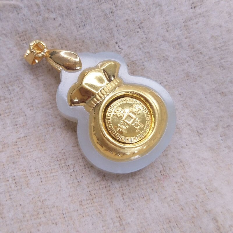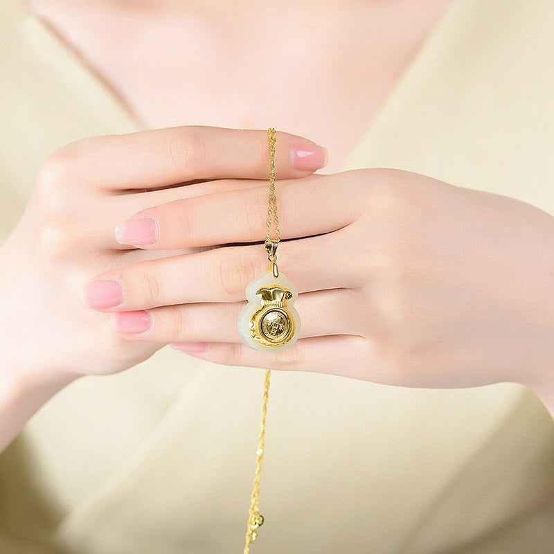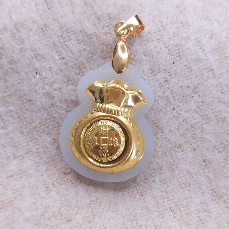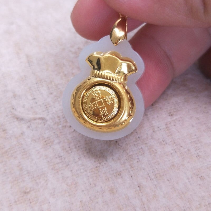 sac de bani și jad hetian combinate. două activatoare de bogăție într-un singur lanț! acest amulet cheamă energetic bogăția în viața proprietarului.