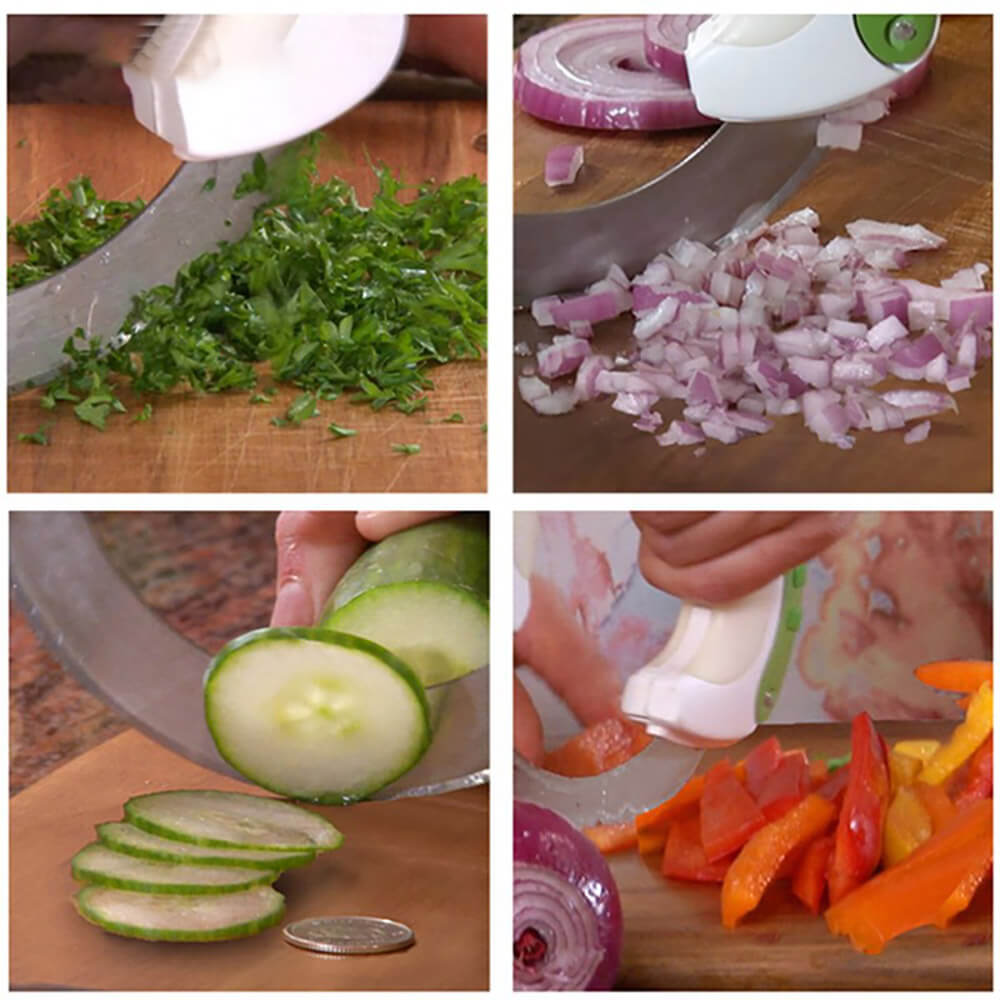 • eficient - mișcarea circulară a lamei îți oferă o experiență de tăiere ă și precisă pentru diferite alimente și legume, cu un efort minim. lama este puternică și se apleacă într-o formă curbă care se îngustează treptat către un margine fină de ascuțită pentru tăieri fine de fiecare dată. un must-have pentru toți iubitorii de bucătărie!