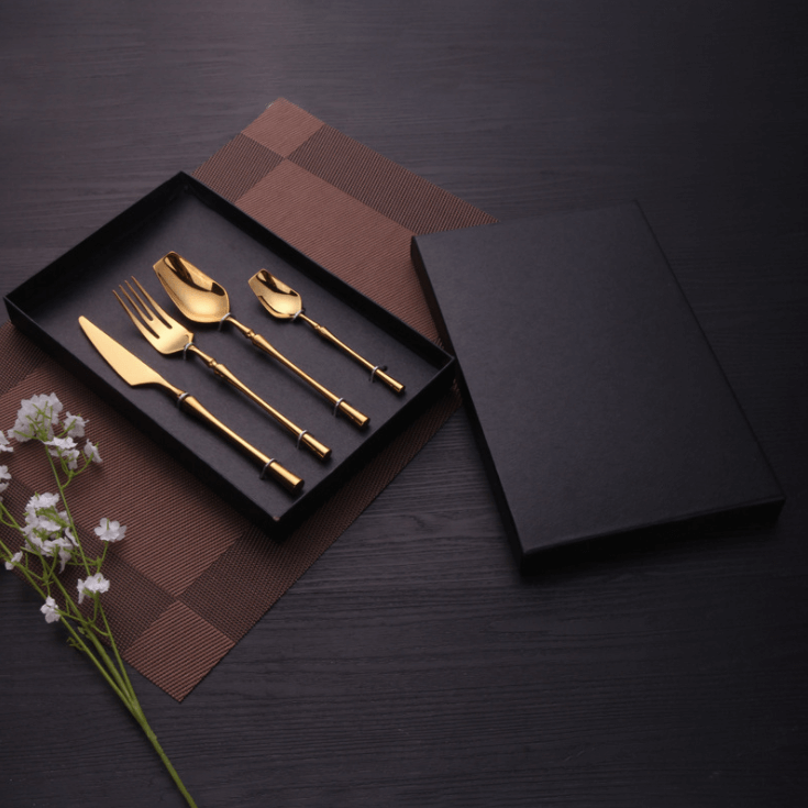 acest set este creat pentru a impresiona oaspeții. designul este modern și minimalist, forjat manual și fabricat din oțel inoxidabil 18/10. tacâmurile noastre sunt concepute cu greutatea ă, rezistență înaltă la coroziune și un strat de titan care rămâne în loc dacă este manevrat cu grijă.