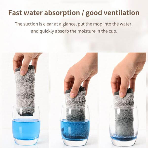 funcția de stoarcere fără a atinge cu mâna. nu vă veți simți obosiți să opriți în mod constant pentru a stoarce apă din capul mopului! datorită designului al acestui mop, este ușor să-l stoarceți printr-o mișcare de rotație. clătiți și stoarceți mopul fără a vă murdări mâinile!