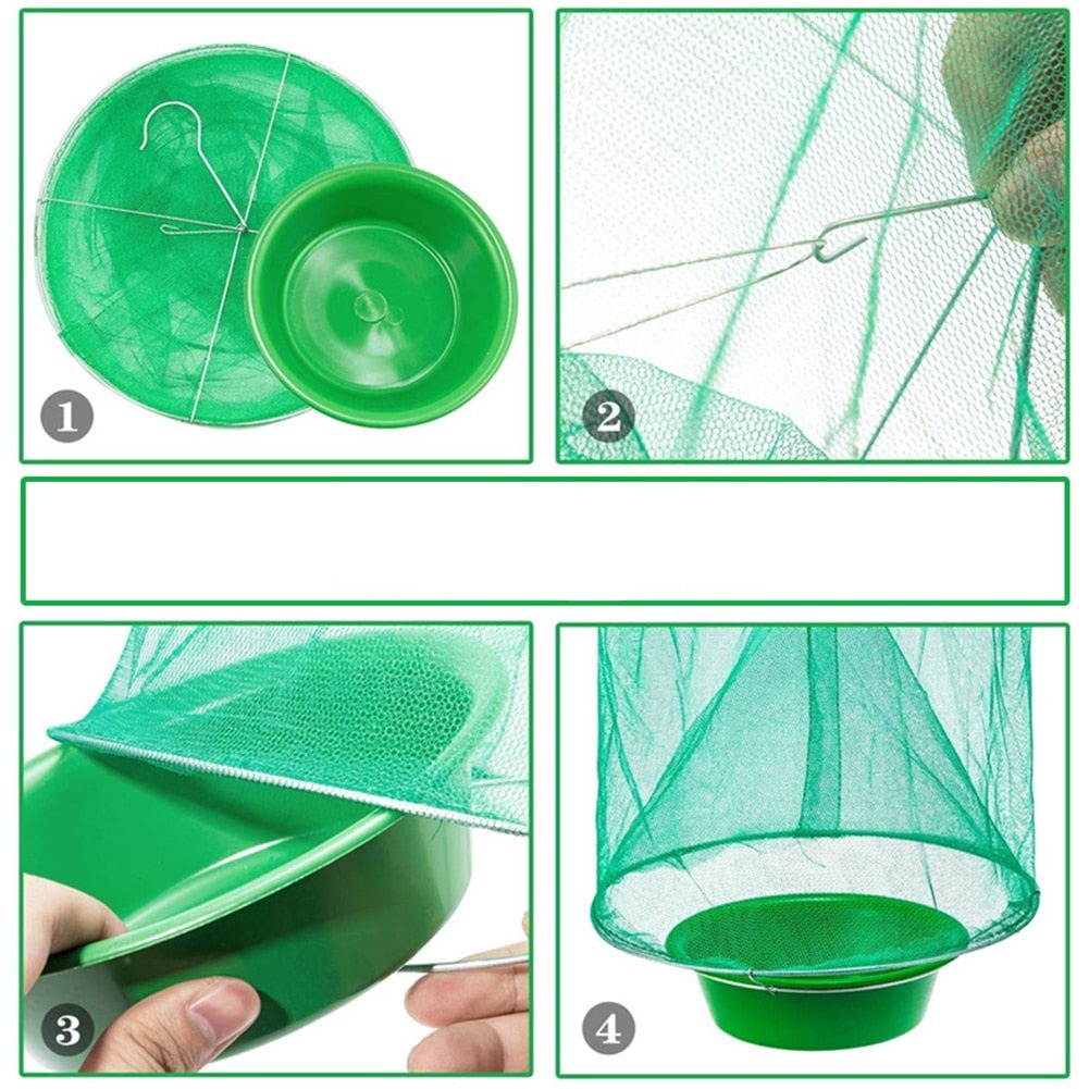 dbilă - cu fire ușoare rezistente la intemperii și plasă de plastic, capcana noastră pentru muște poate fi utilizată în exterior în orice fel de climă. capcana pentru muște este livrată plată și se agață de un cârlig sau alt dispozitiv de prindere furnizat de dumneavoastră.