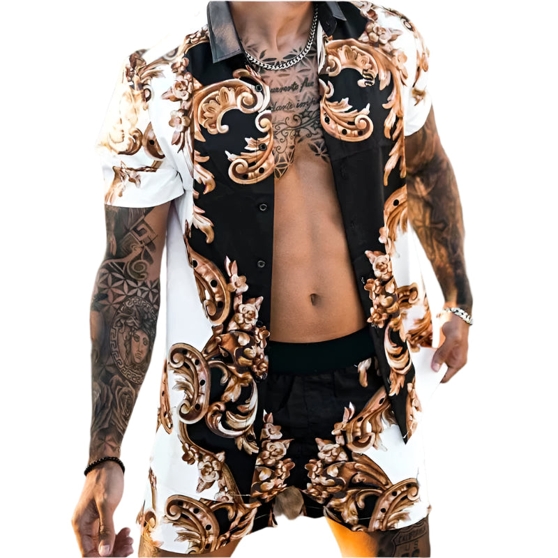 Intrați în stil în această vară cu setul nostru din două piese pentru bărbați, perfect pentru un look trendy și confortabil. Acest set este conceput pentru a vă menține răcoros în zilele călduroase, în timp ce arătați la modă.
