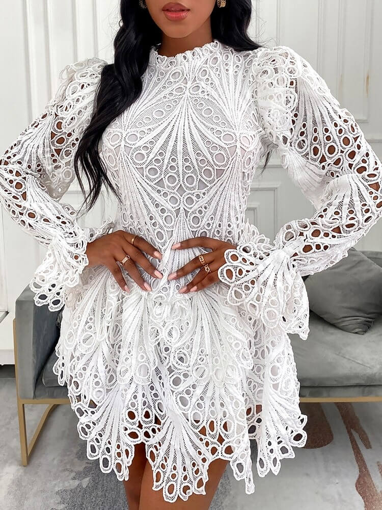 • dantelă brodată: această rochie mini clasică este confecționată din dantelă moale spălată, combinată cu broderii îndrăznețe potrivite pentru orice ocazie.