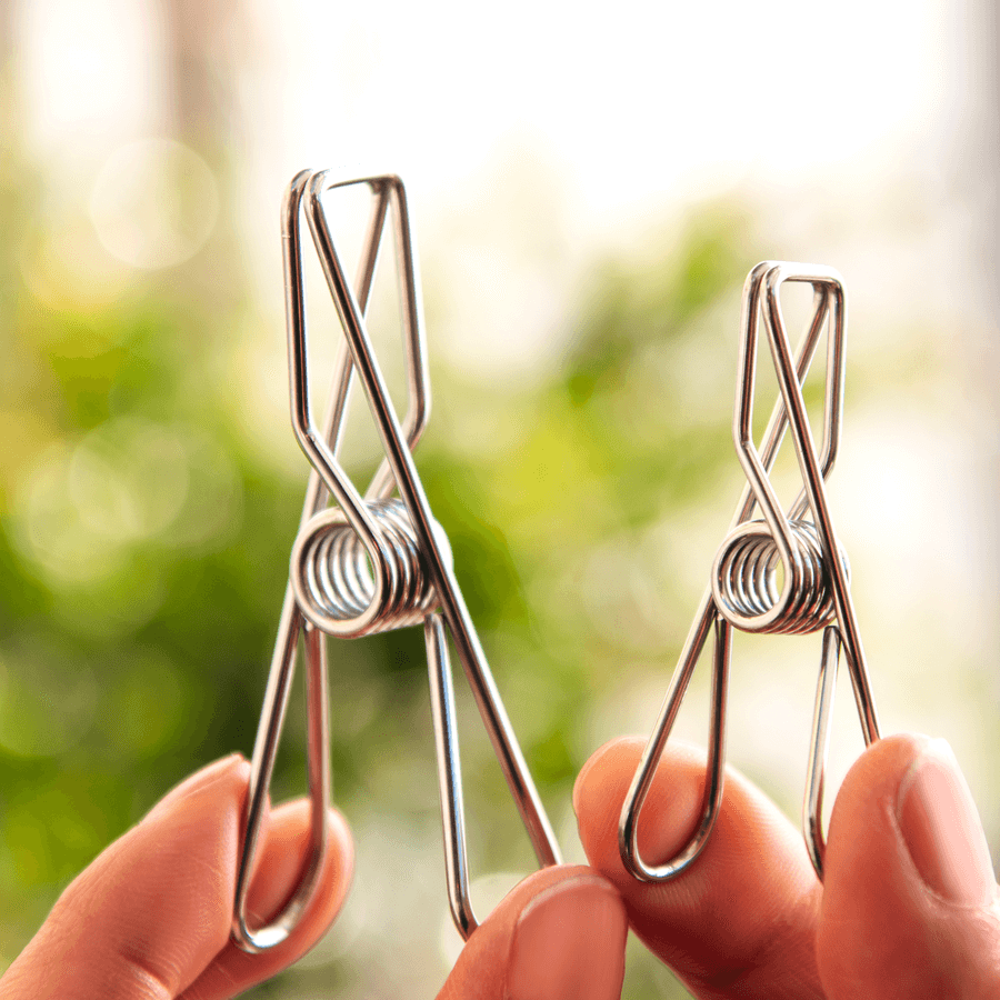 de câte ori nu ți s-a întâmplat să iei o agrafă de pe sfoară și să-ți explodeze în mână? acest lucru creează un dezastru și poluare plastic inutilă. probabil prea des ca să le numeri. fă din acele deșeuri de plastic un lucru din trecut cu știfturile noastre de rufe din oțel inoxidabil!