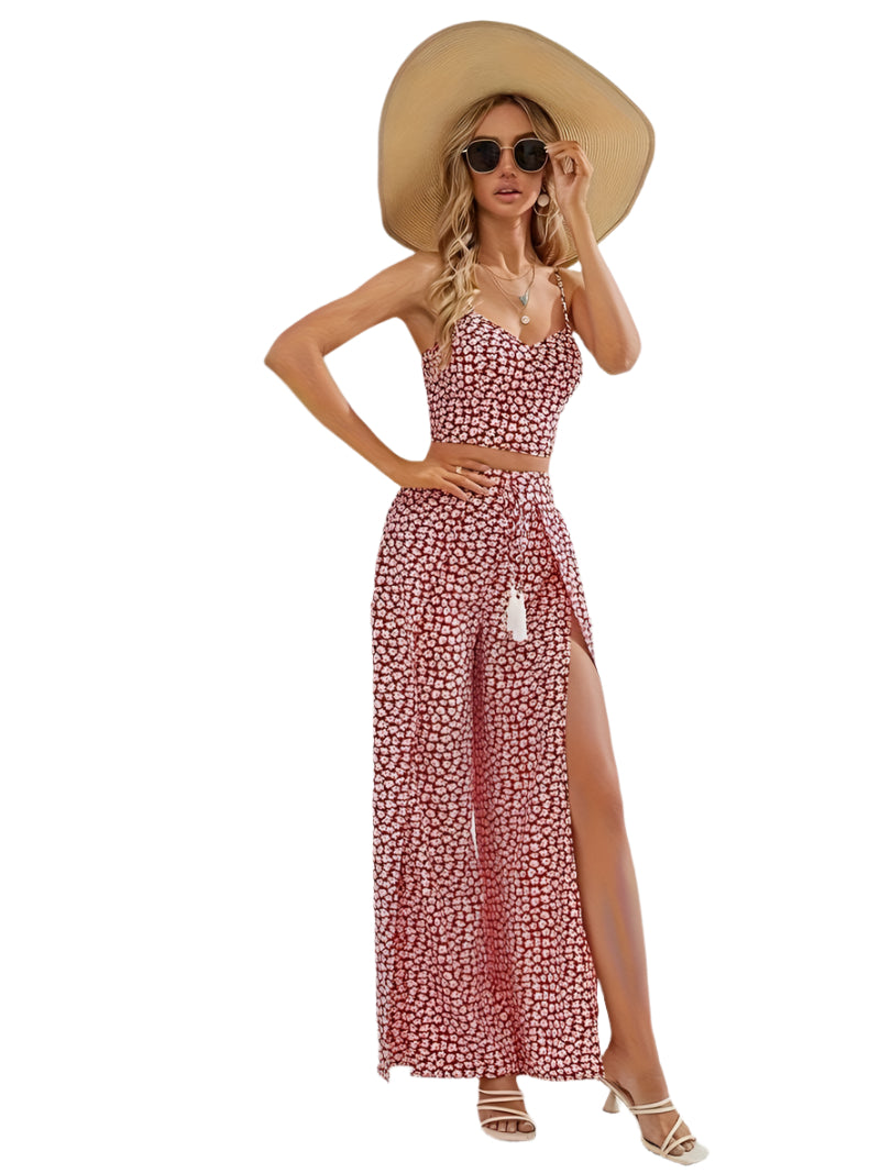 Gabriella este alegerea perfectă atunci când dorești să combini stilul și confortul. Acest costum din două piese, cu croială lejeră, pune în evidență un model floral jucăuș, care conferă prospețime ținutei tale.