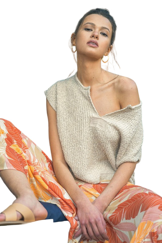 Dames Mouwloze Trui Met Patroon Oatmeal 1