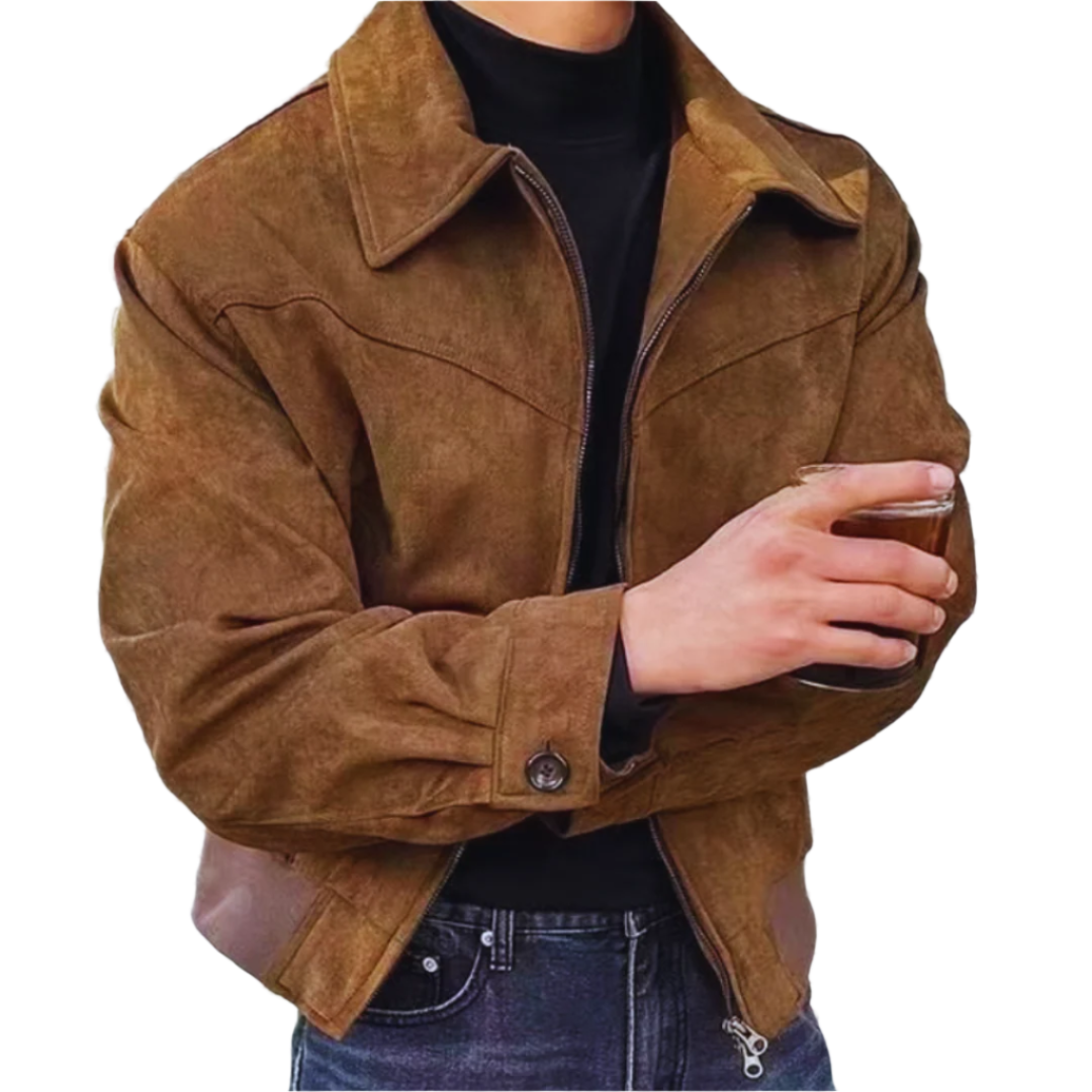 Jacheta din piele de căprioară pentru bărbați, cu căptușeală moale din bumbac