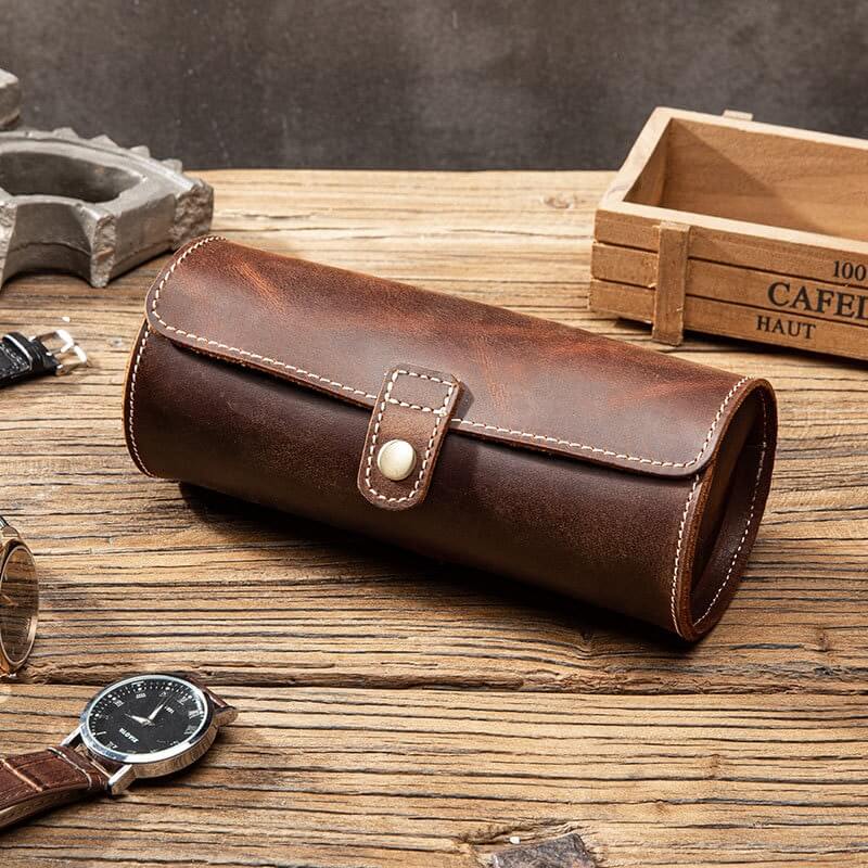 etuiul este fabricat din piele autentică și va proteja ceasurile tale cu stil. acesta e cu un interior catifelat suficient de moale pentru a fi folosit ca pernă pentru ceasurile valoroase pe care le conține. acest organizator de ceasuri protejează ceasurile tale și arată elegant în orice situație.