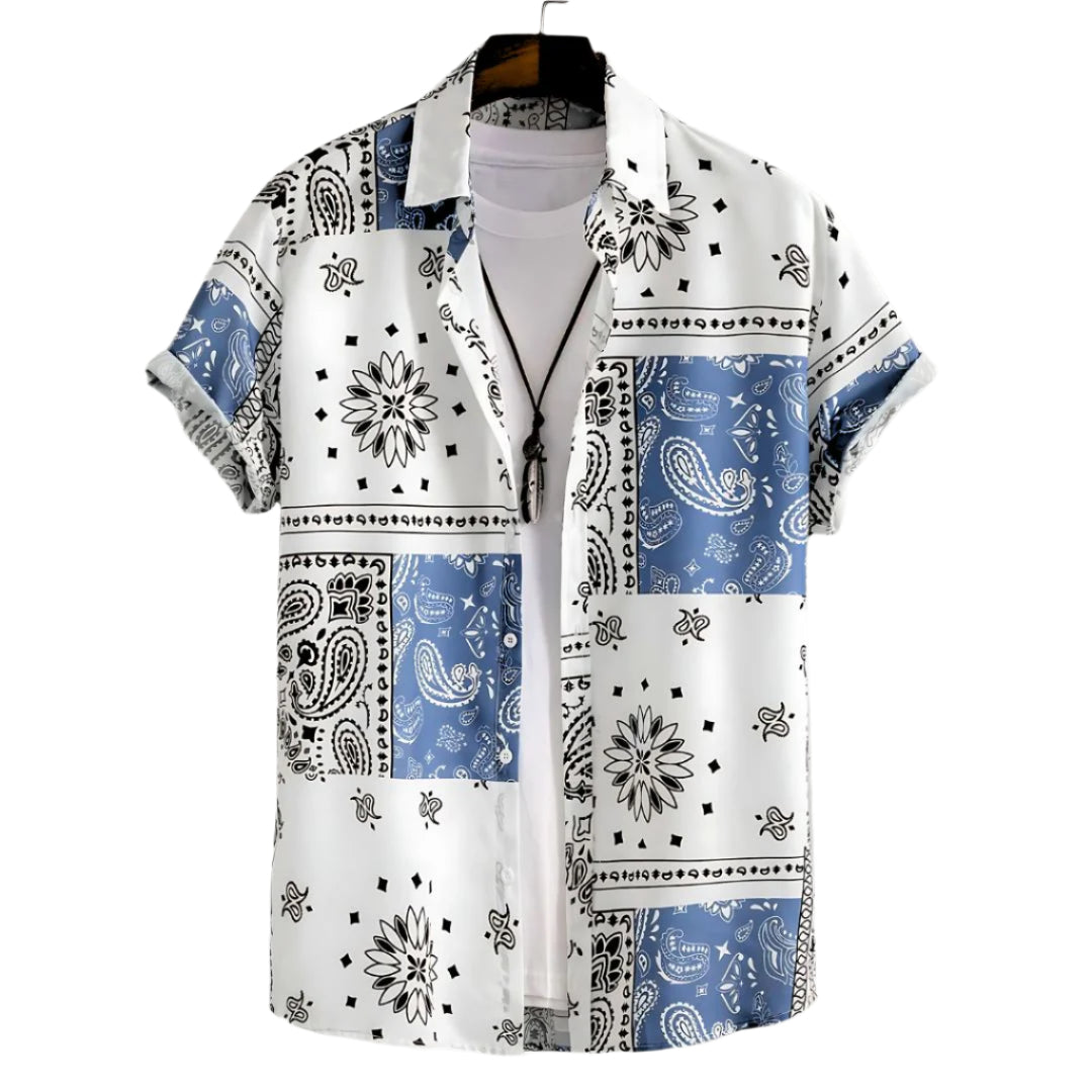 Cu amestecul său unic de modele paisley, această cămașă este un adevărat punct de atracție. Este ideală pentru momentele de relaxare și poate fi combinată cu ușurință cu blugii sau pantalonii scurți preferați.