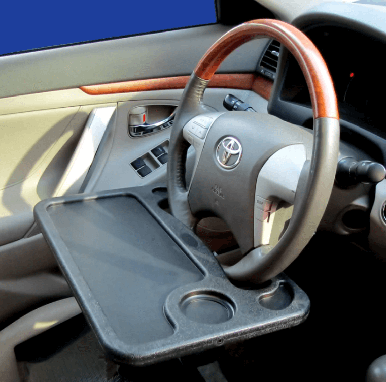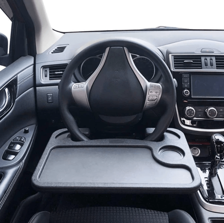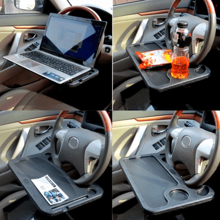 aruncă o privire la această masă pentru volan! acest tăviță este ă pentru a lucra în mișcare și este cea mai bună modalitate de a evita stropirea și murdărirea mașinii tale în timp ce mănânci ceva în mașină.