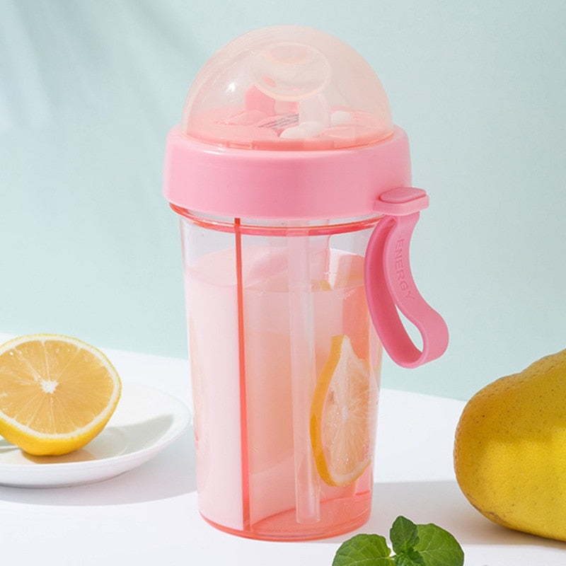 faceti viata si sportul mai usoare cu aceasta sticla de apa eleganta, fara bpa. cu design-ul inteligent ce include doua compartimente separate, puteti transporta doua bauturi diferite simultan. de exemplu, poate doriti sa combinati apa cu o baut energizanta? sunt incluse doua pai, pe care le puteti atașa cu usurința capacului detasabil. de asemenea, exista o maner din silicon pe partea laterala a capacului.