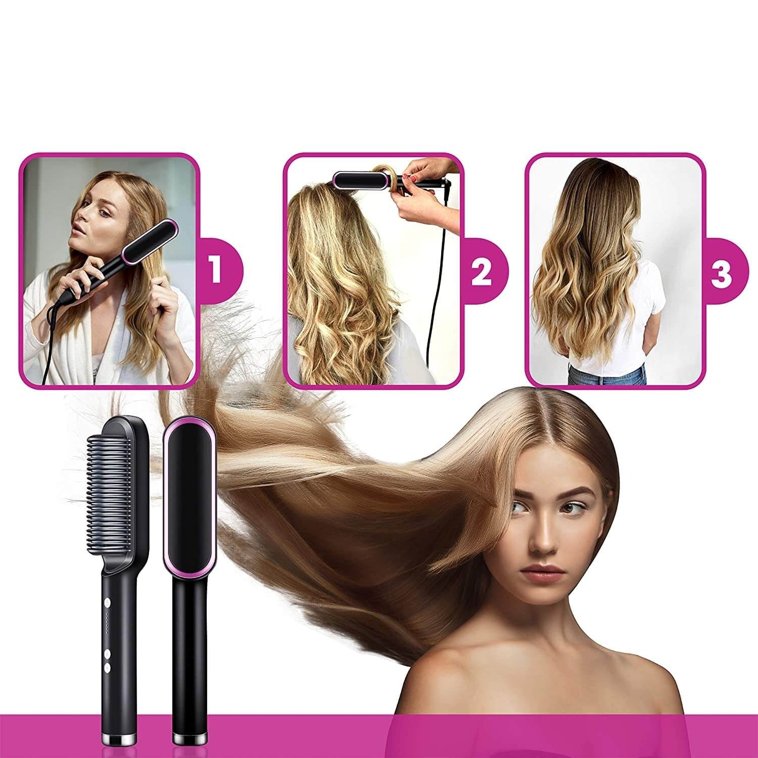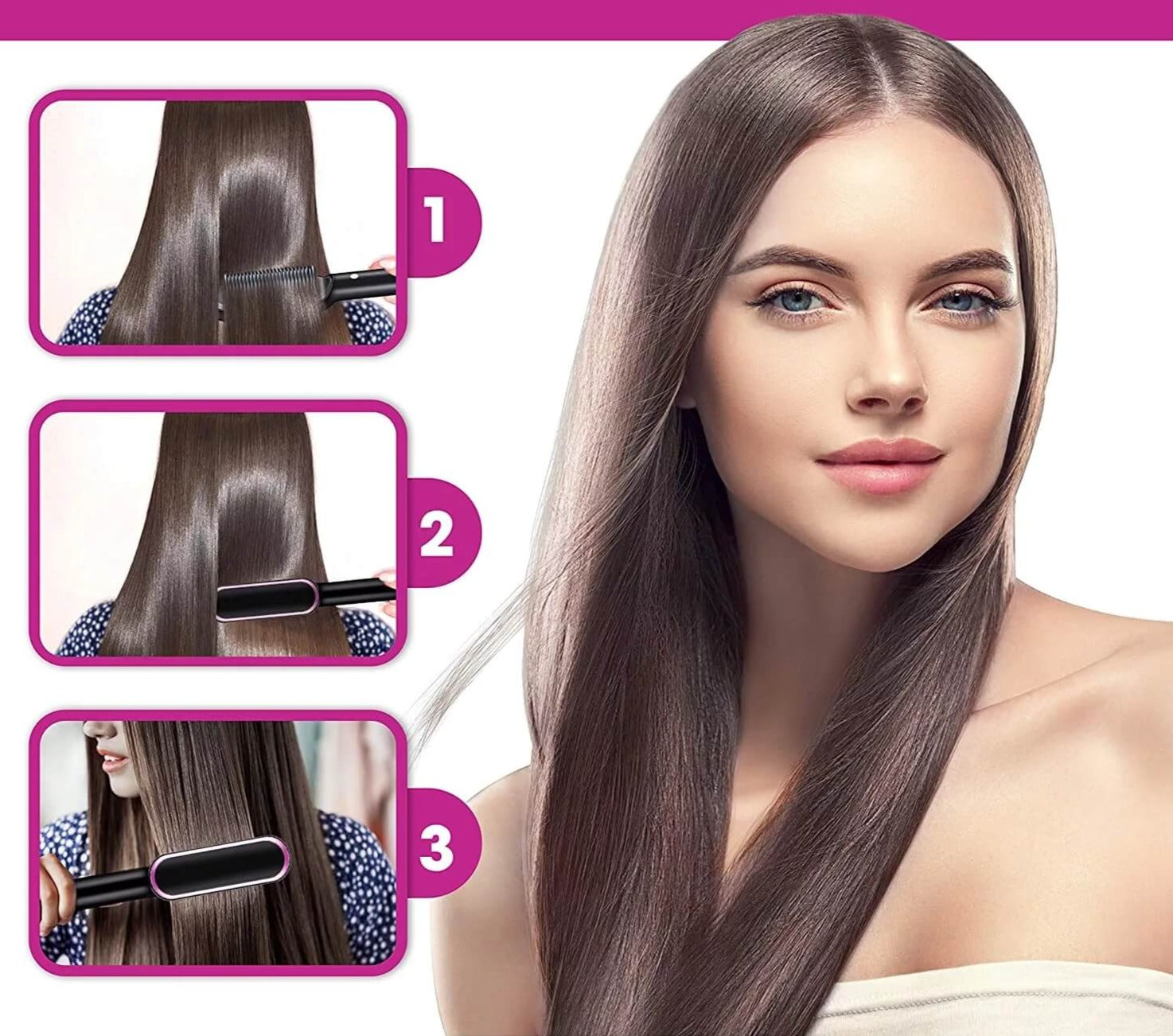 tratează-te cu o nouă rutină de frumusețe cu peria profesională cu plăcuță pentru îndreptat părul încălzită.