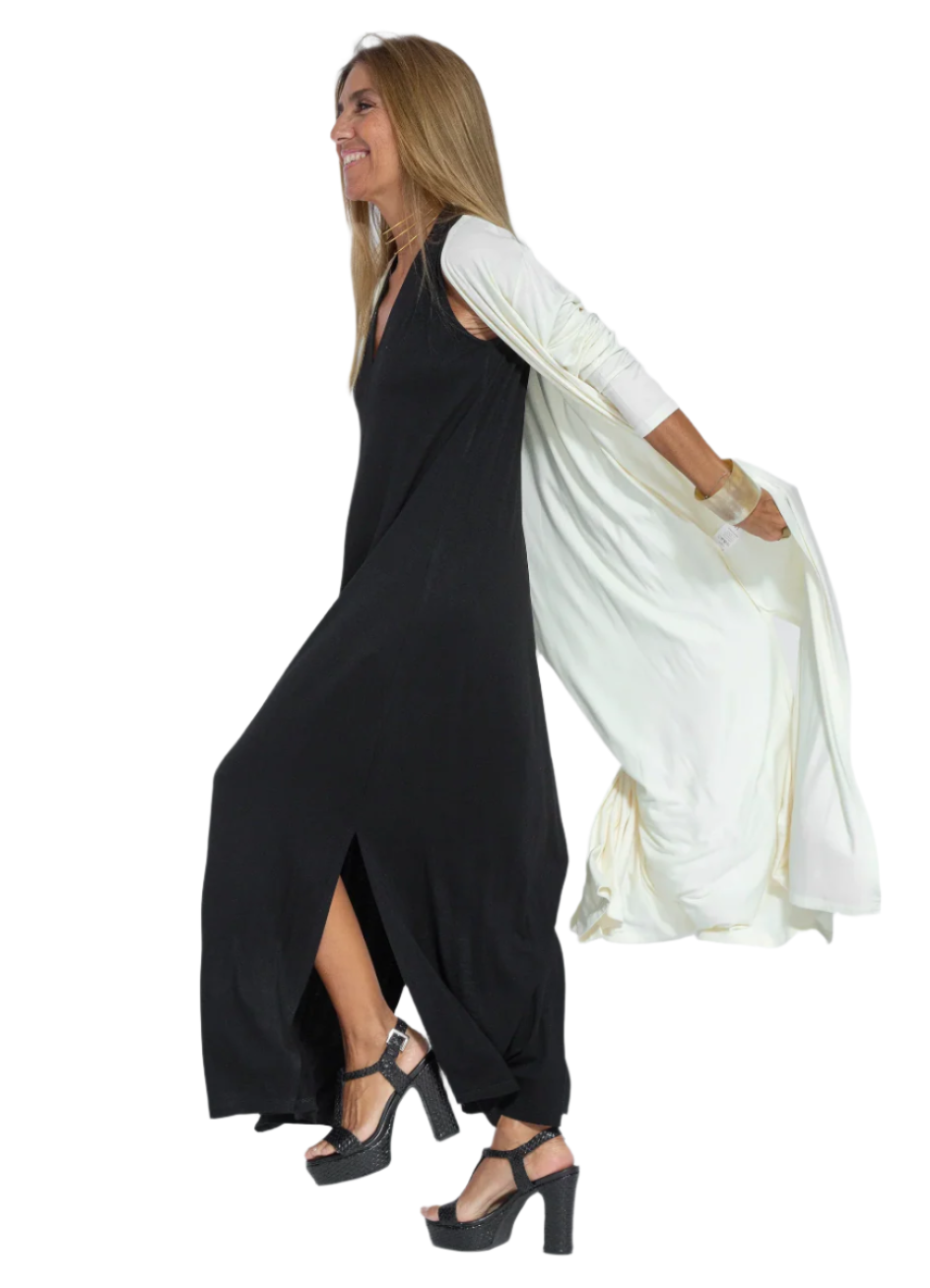 Rochia lungă și vesta sunt concepute pentru a fi versatile și atemporale, ceea ce le face ideale atât pentru ocazii de zi cu zi, cât și pentru ocazii festive. Cu o croială flatantă și un material ușor, vă veți bucura să purtați această rochie toată vara.