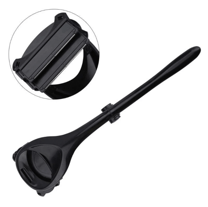 - mânerul de plastic în formă de s permite răsul părului de pe spatele tău.