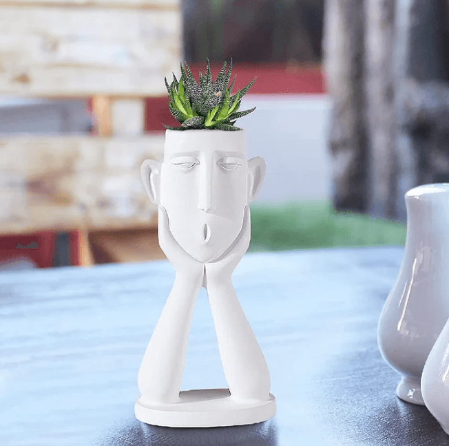 design nordic: un bărbat chipeș cu obraji te privește frumos, designul abstract și elegant al feței ghiveciului este potrivit pentru a lăsa să crească plante miniatle în ghiveciul principal, cum ar fi suculentele, cactușii sau plantele aromatice. adaugă o atmosferă artistică oriunde așezi aceste ghivece.