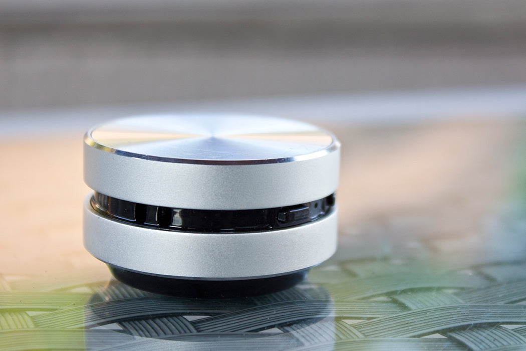 naast een opvallend mooi ontwerp is de draagbare luidspreker ook uiterst compact. in feite heeft hij slechts een diameter van 40 mm en weegt hij maar 35 gram, waardoor hij nauwelijks groter is dan een muntstuk. je kunt hem gemakkelijk meenemen in je portemonnee, zak of zelfs aan een halsketting of sleutelhanger om je nek dragen.